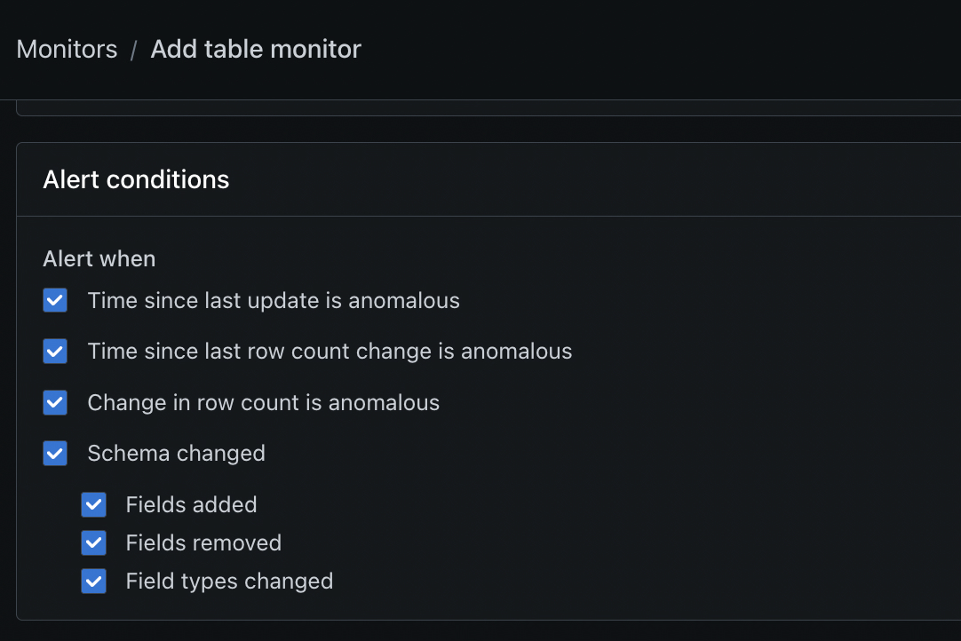 You can now configure Table Monitors to alert on specific schema change types rather than all schema changes at once! The supported types are: