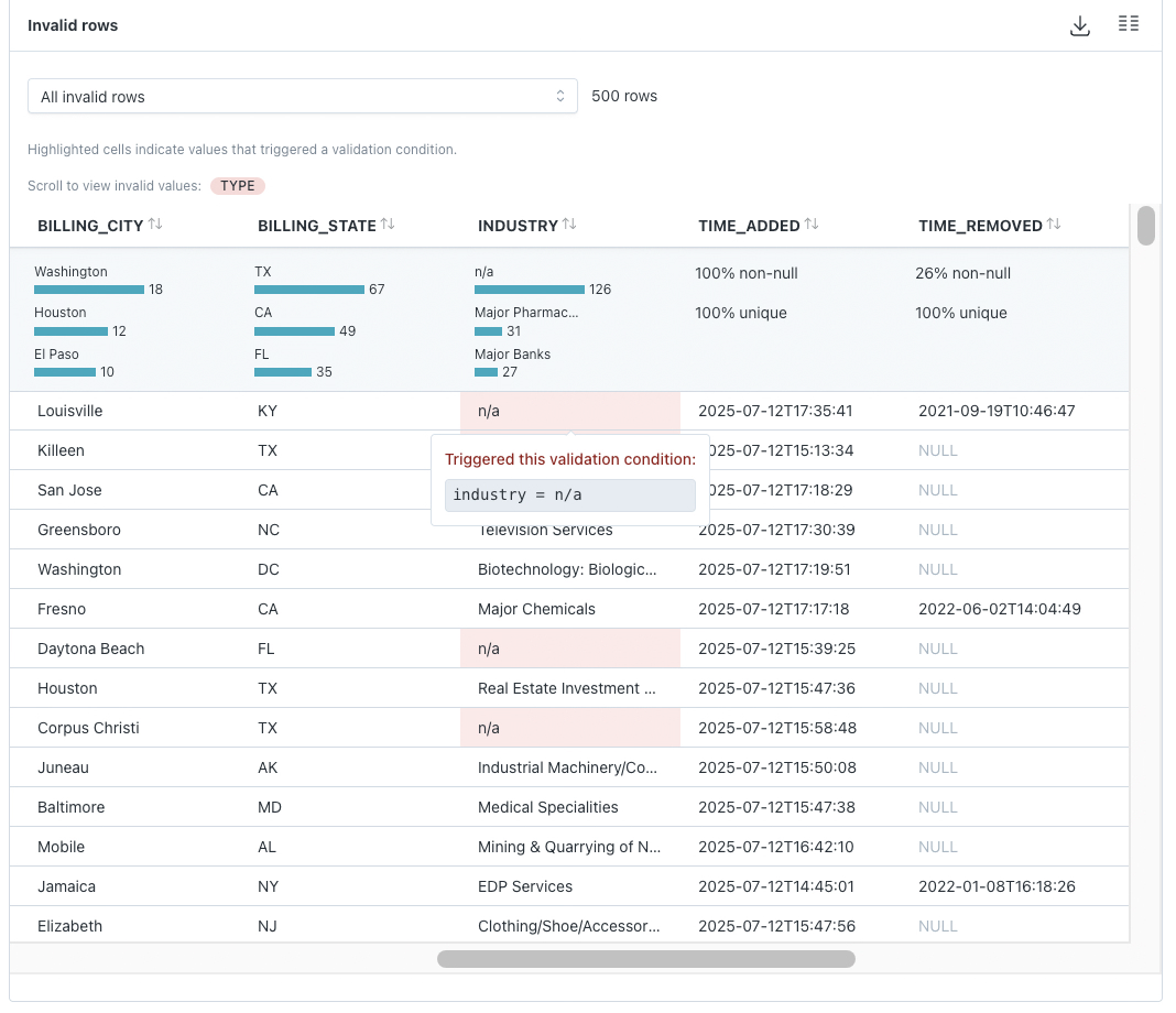 Working with Validation Monitor alerts that include multiple conditions just got easier! Each invalid row now indicates which specific validation condition it matched.