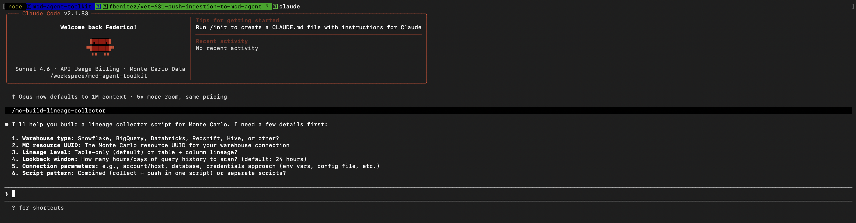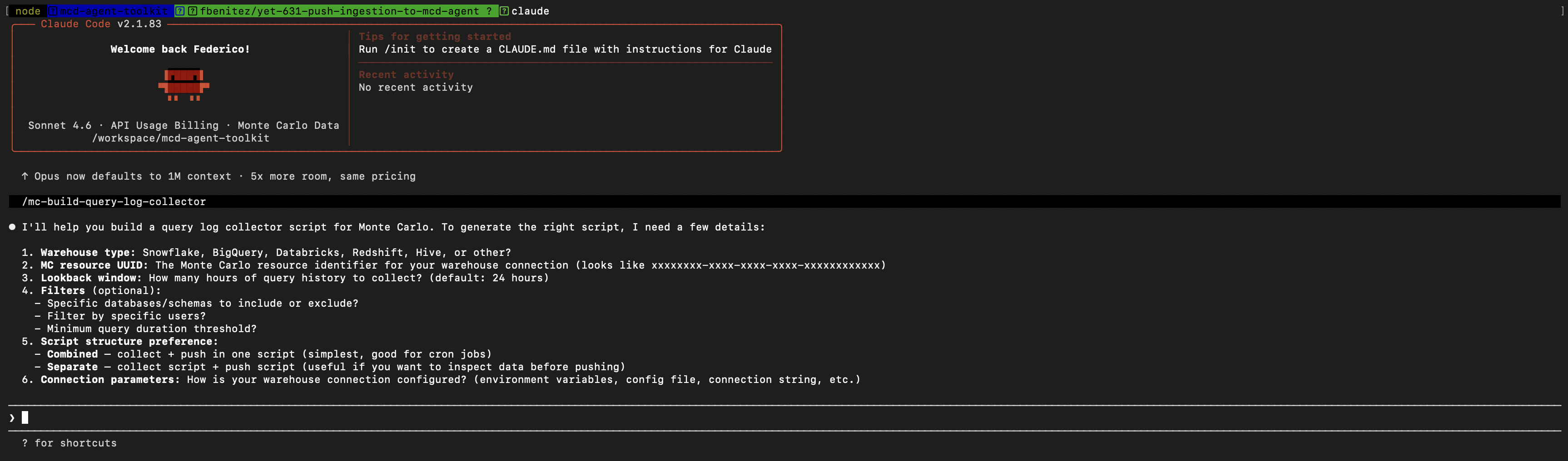 Build your data collector and pusher using AIThe mcd-agent-toolkit let you generate a complete, working push integration in minutes. Install our plugin in Claude and use these slash commands: