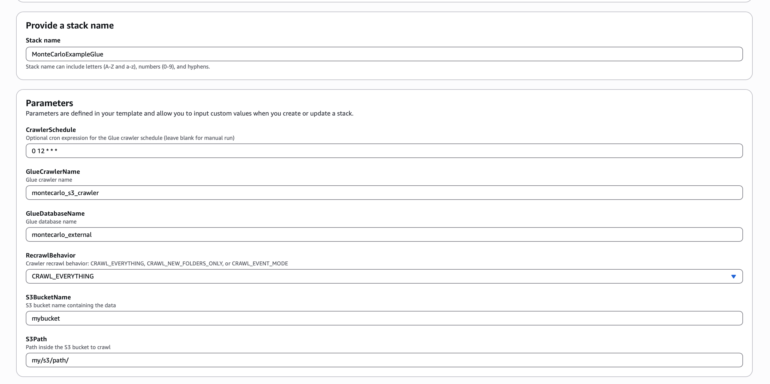 This can be completed using the Monte Carlo CLI (recommended) or through the AWS UI directly. For detailed instructions on how to connect Glue for either option, please see our Glue documentation.