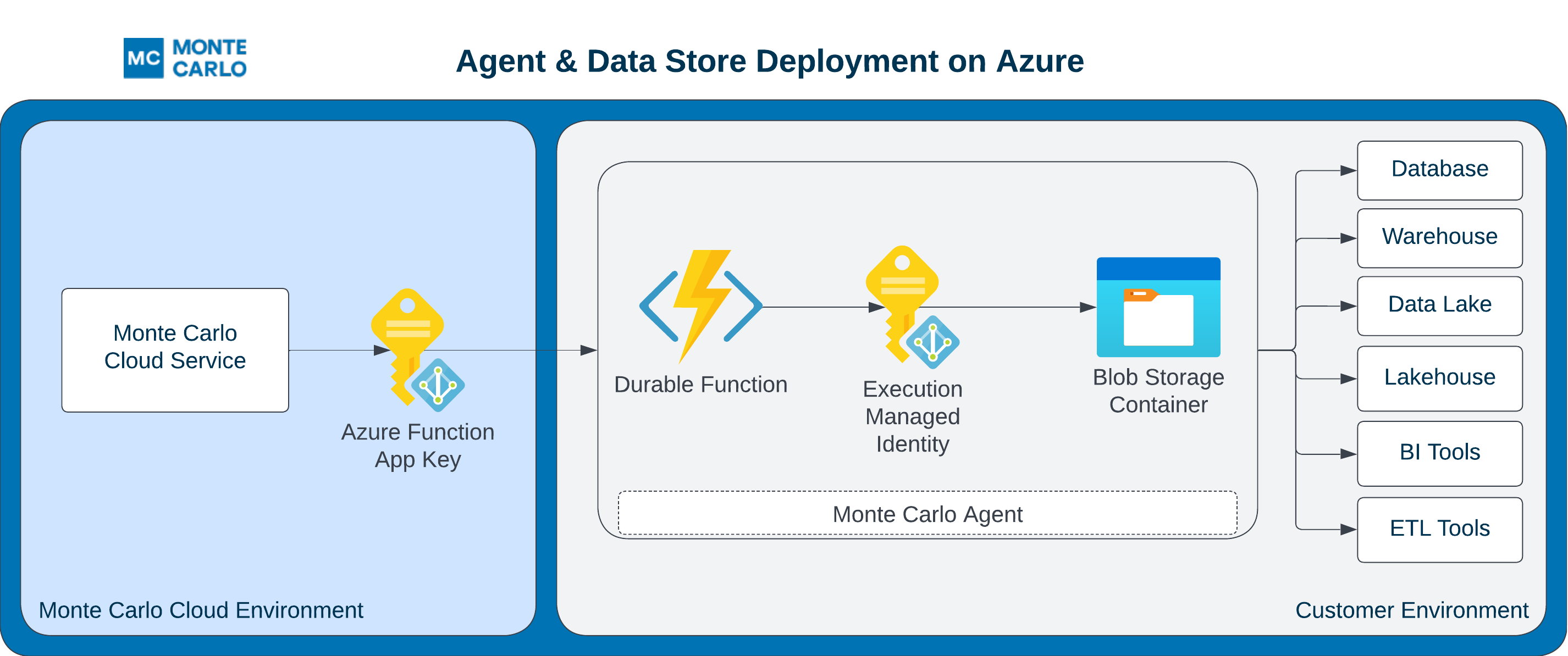 Please note that version 1.0.3 or newer of the agent module is required and that we strongly recommend not sharing storage accounts with other jobs, as Monte Carlo may overwrite existing data.