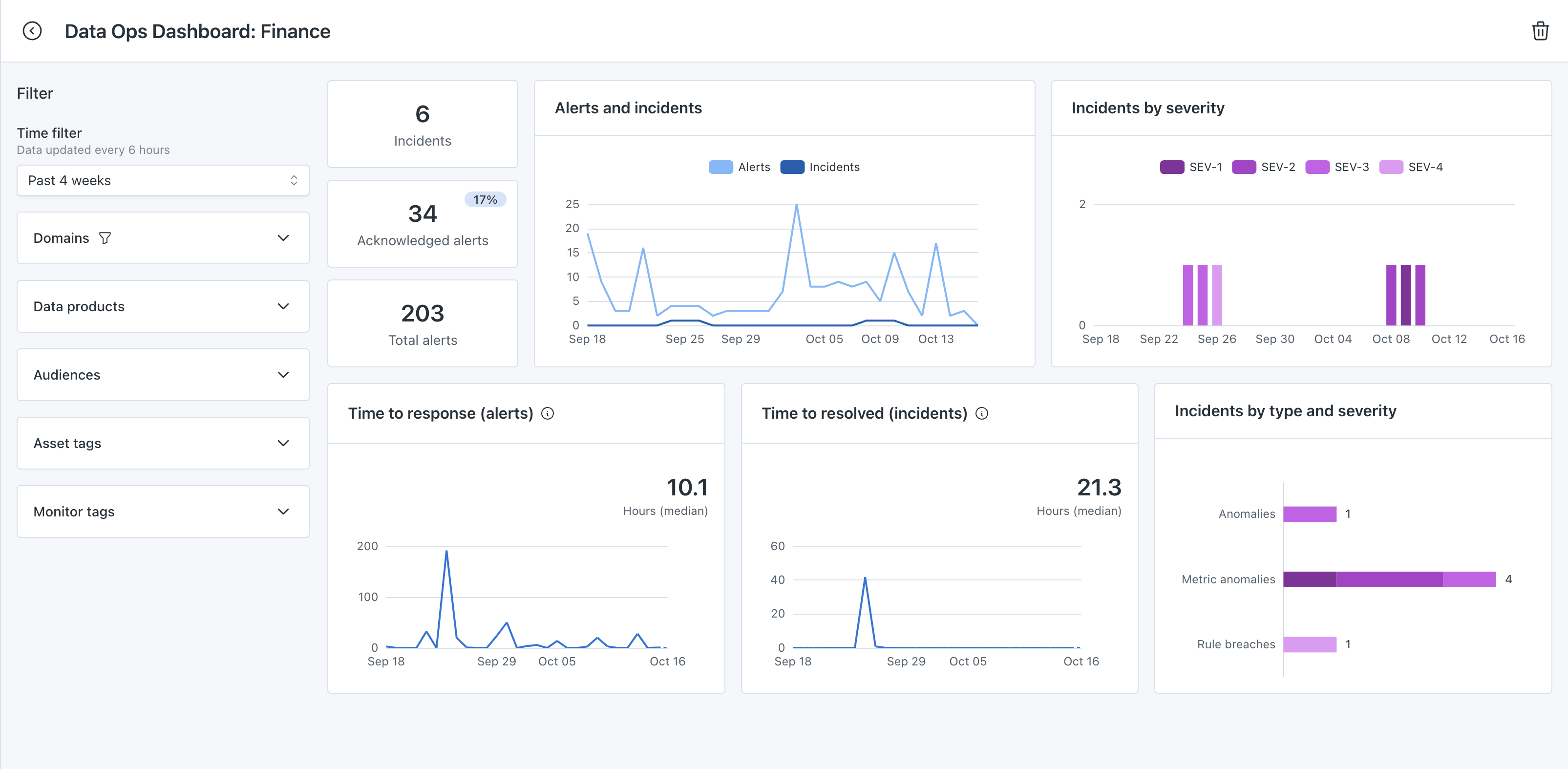 Replacing the data reliability dashboardThe data operations dashboard has replaced some of the content on the data reliability dashboard and the data reliability dashboard is being deprecated. Some of the content has moved to the Activity dashboard. If you have needs around deprecated content, please reach out here.