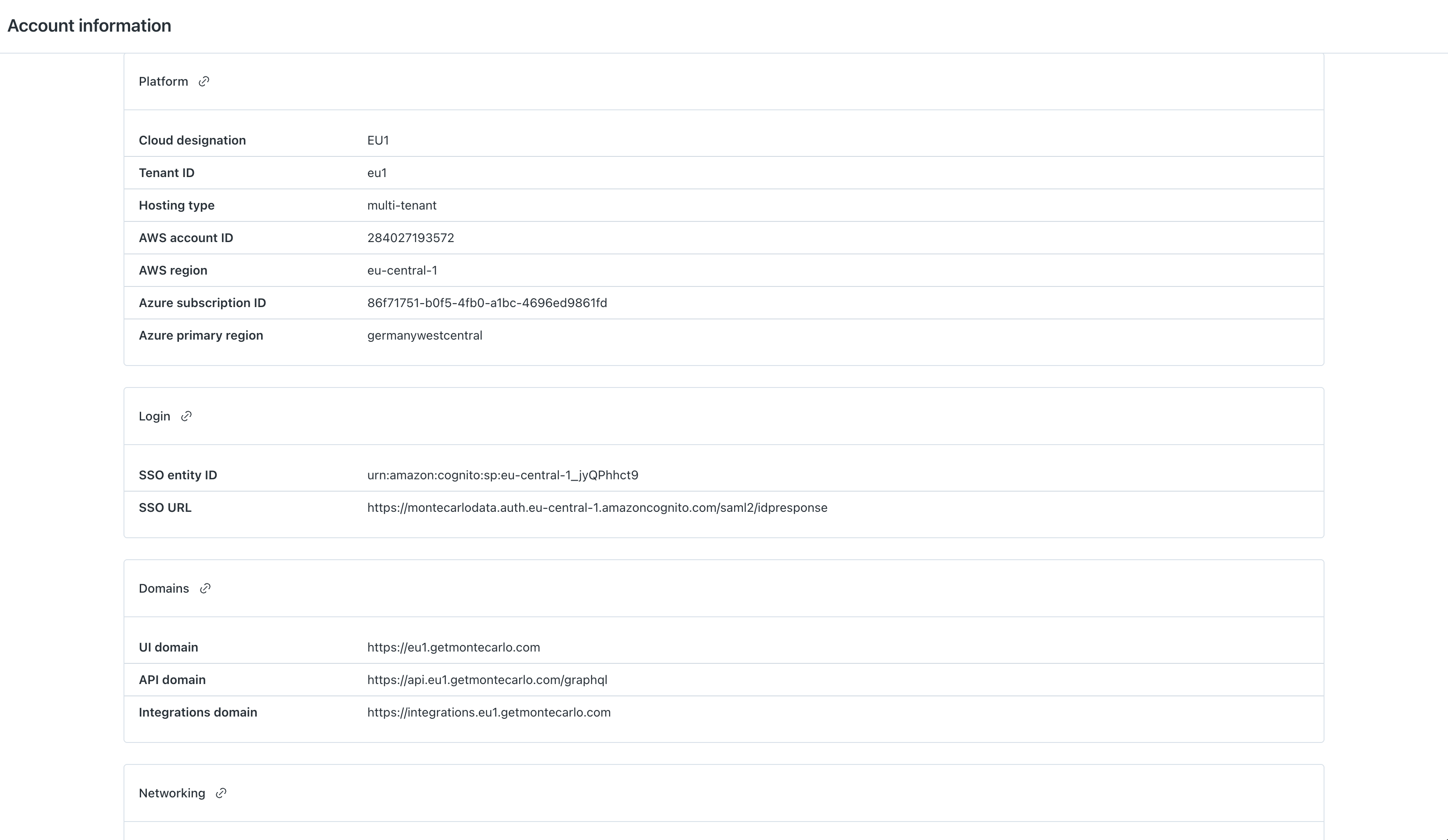 Users can find information about their account by navigating here: https://eu1.getmontecarlo.com/account-info