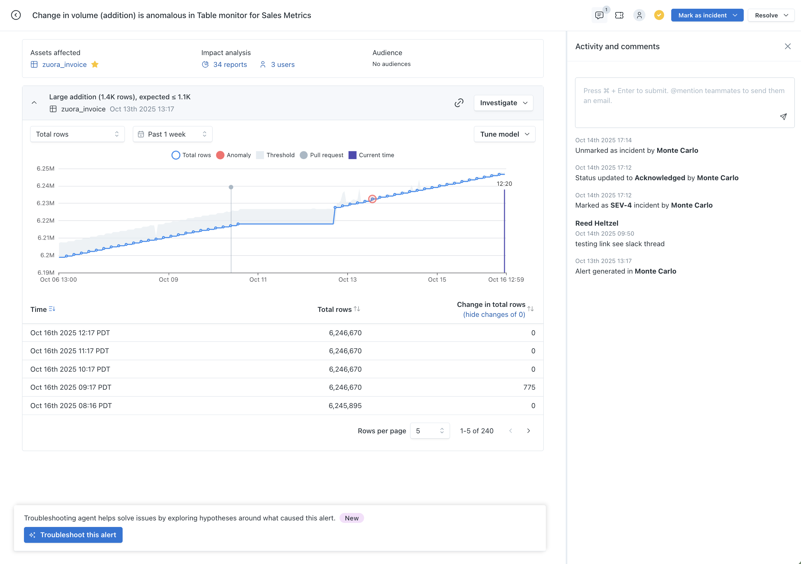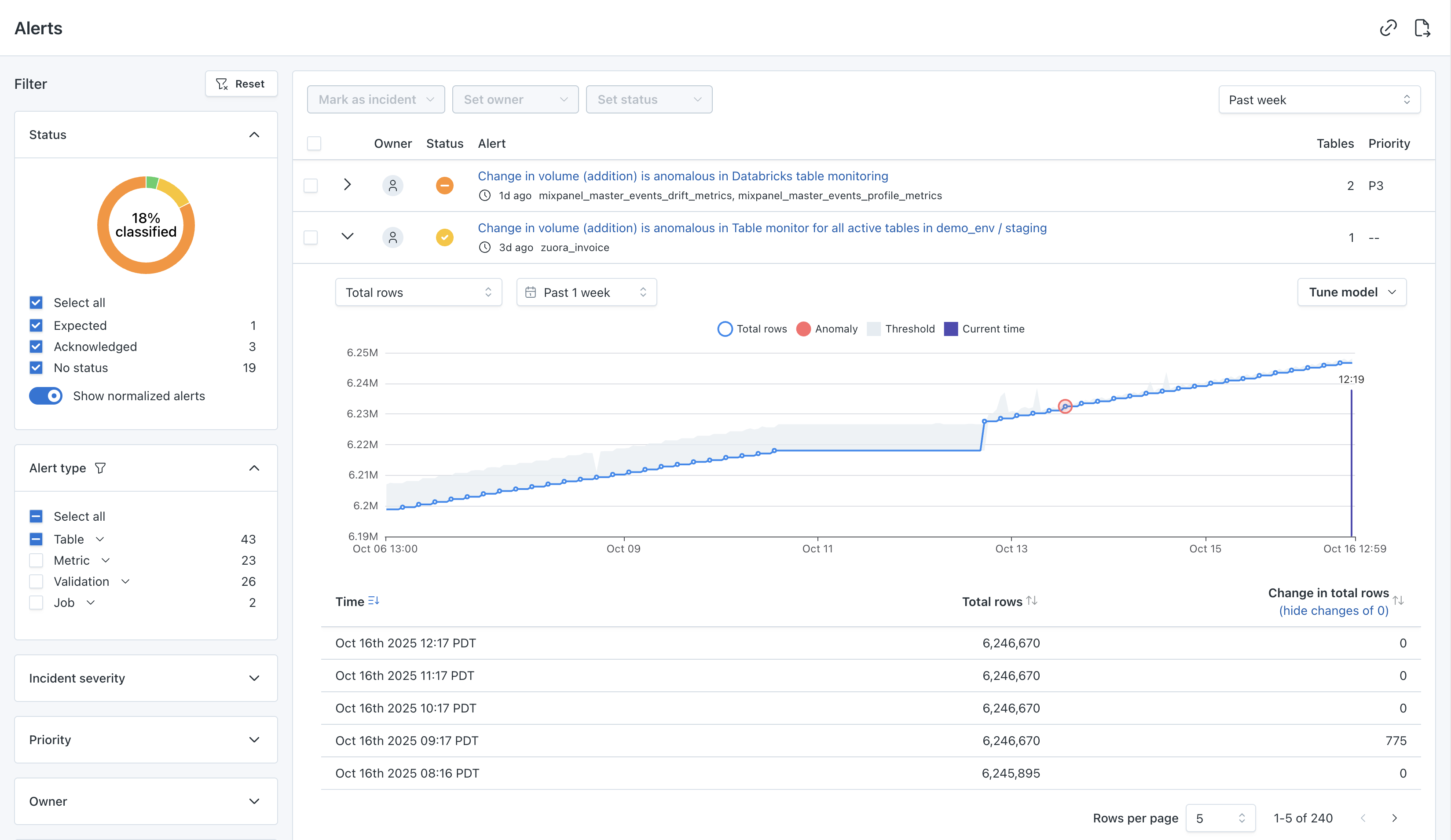 Discover and troubleshoot anomalous events happening in the data assets within your data ecosystem from the Alerts pages in Monte Carlo.