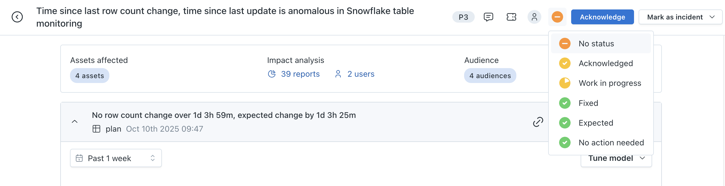 - Tables - a list of tables involved in the alert. Clicking on a table in this list will take you to the Asset page for that table.