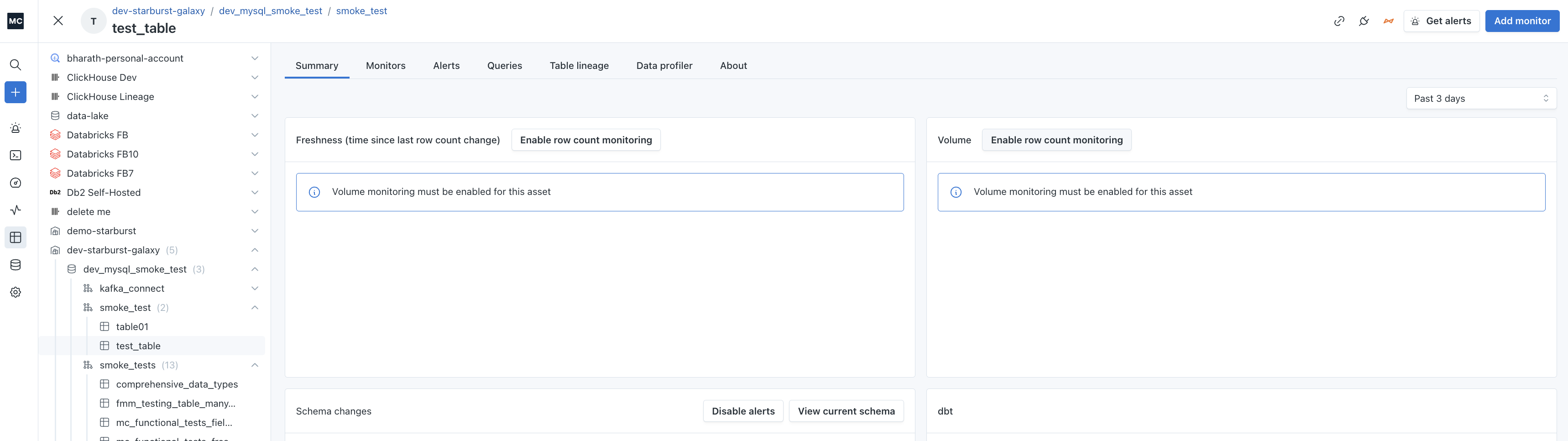 Freshness and volume monitoring for Starburst requires creating SQL monitors. Unlike some other integrations, these are not enabled automatically.